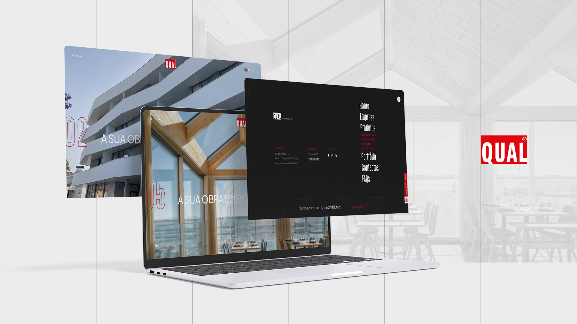 Qual, a specialist in window framing solutions, has a website focused on enhancing project value and user experience. The layout combines the brand's industrial identity with simple, functional lines, highlighting its services and portfolio. The website's structure reinforces and optimizes the company's digital presence.